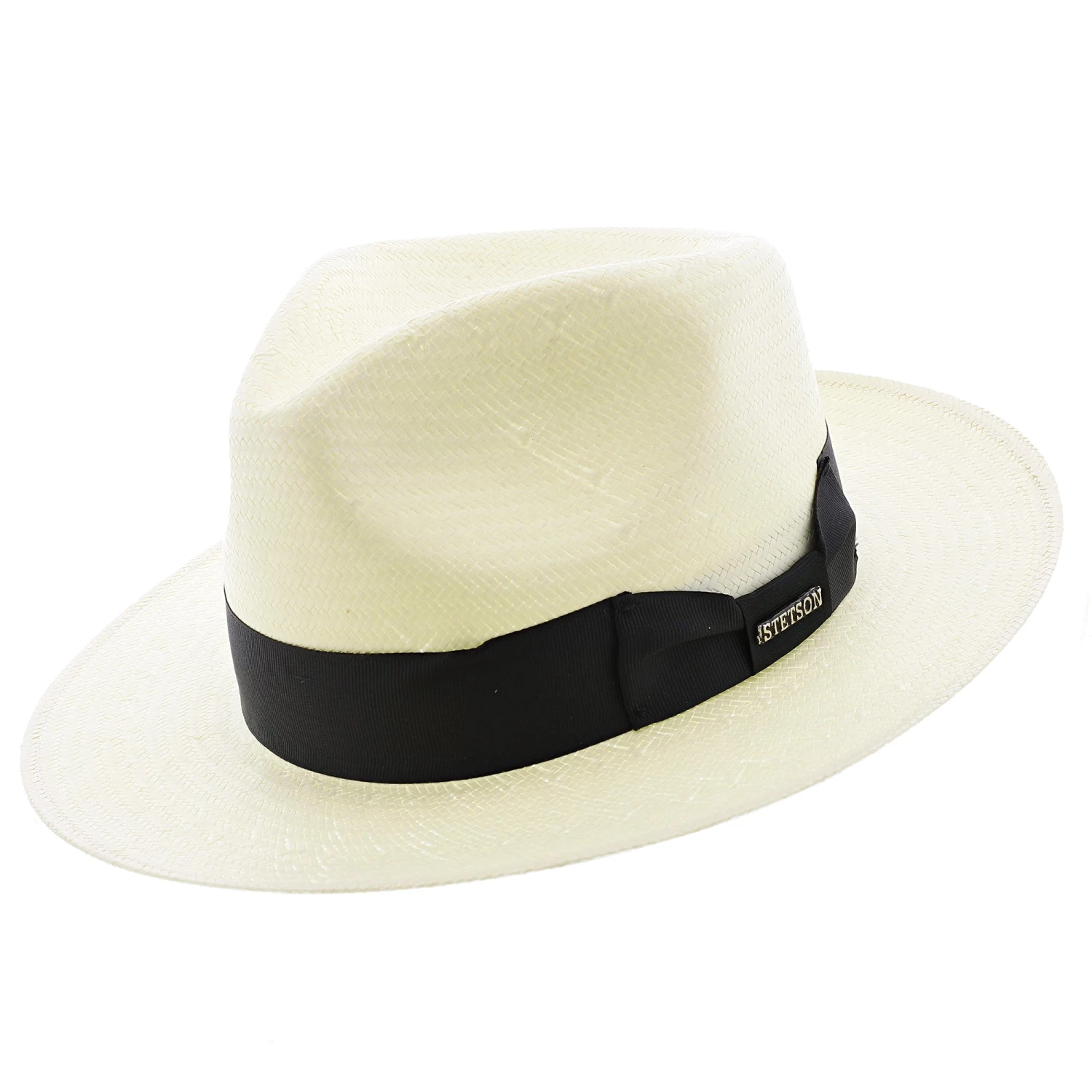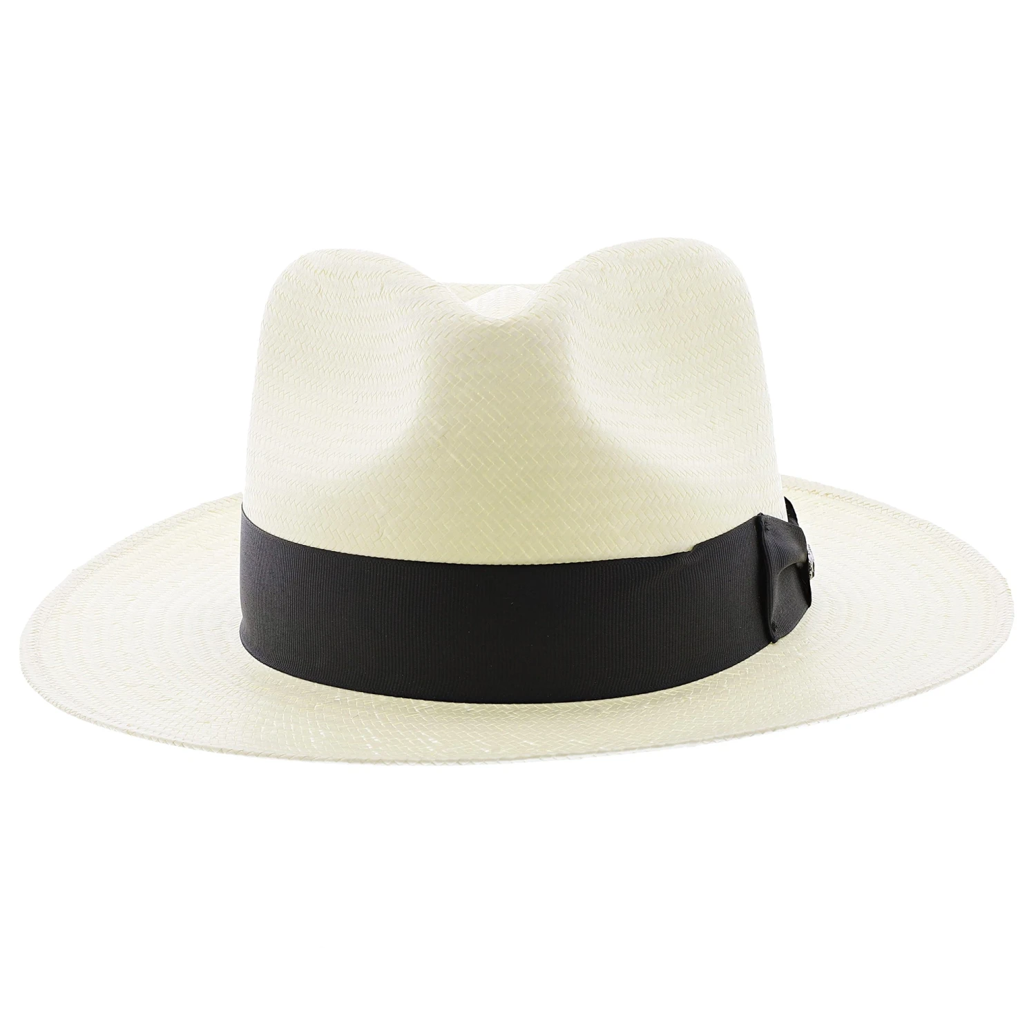 The Adventurer Straw Fedora is constructed of firm finish, lightweight shantung straw and features a classic pinch front crown, black grosgrain hat band and internal cotton sweatband.