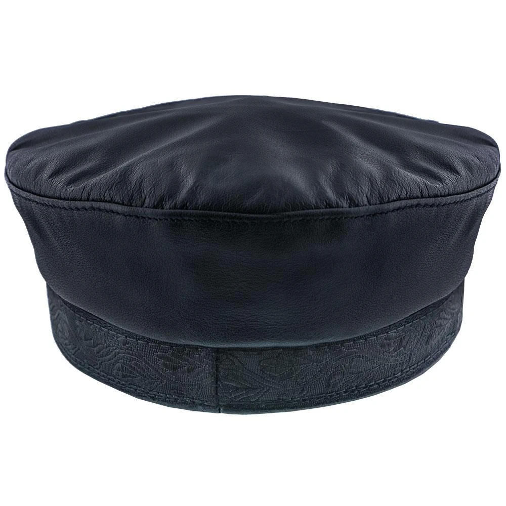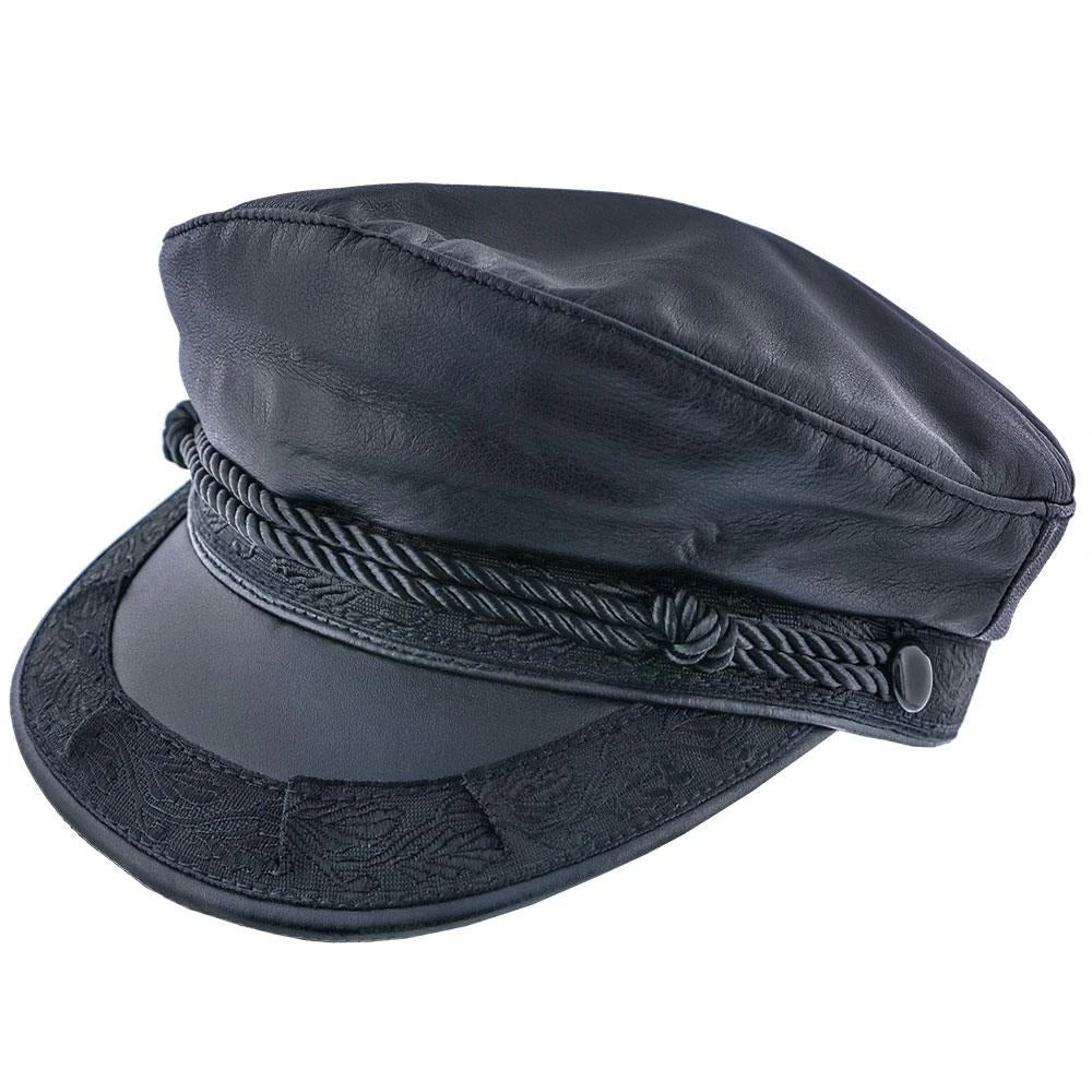 Stylish with its natural leather material, our Aegean AEG103 leather Greek fisherman hat adds a new look to any casual wardrobe. Featuring a dual silver and black weave across its front, center and back, this hat displays a long brim for shielding the eyes on a sunny day. With its eye-catching design coupled with precise stitches, the owner of this Greek fisherman hat will enjoy making a fashion statement while wearing it at the beach.