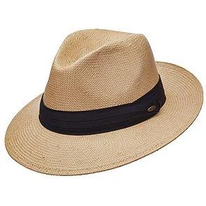 One of our favorite hats is the safari hat. This Scala raffia straw safari is a great example of the style. It’s a good hat for golf, watching a ball game, or traveling to warmer climate. It’ also able to be worn as a casual or formal hat. It’s very versatile.