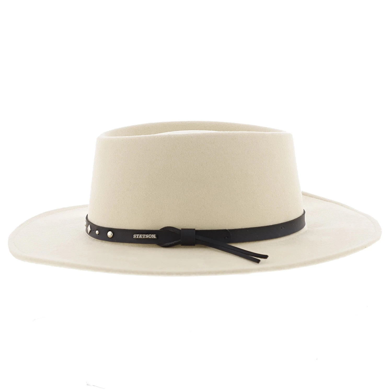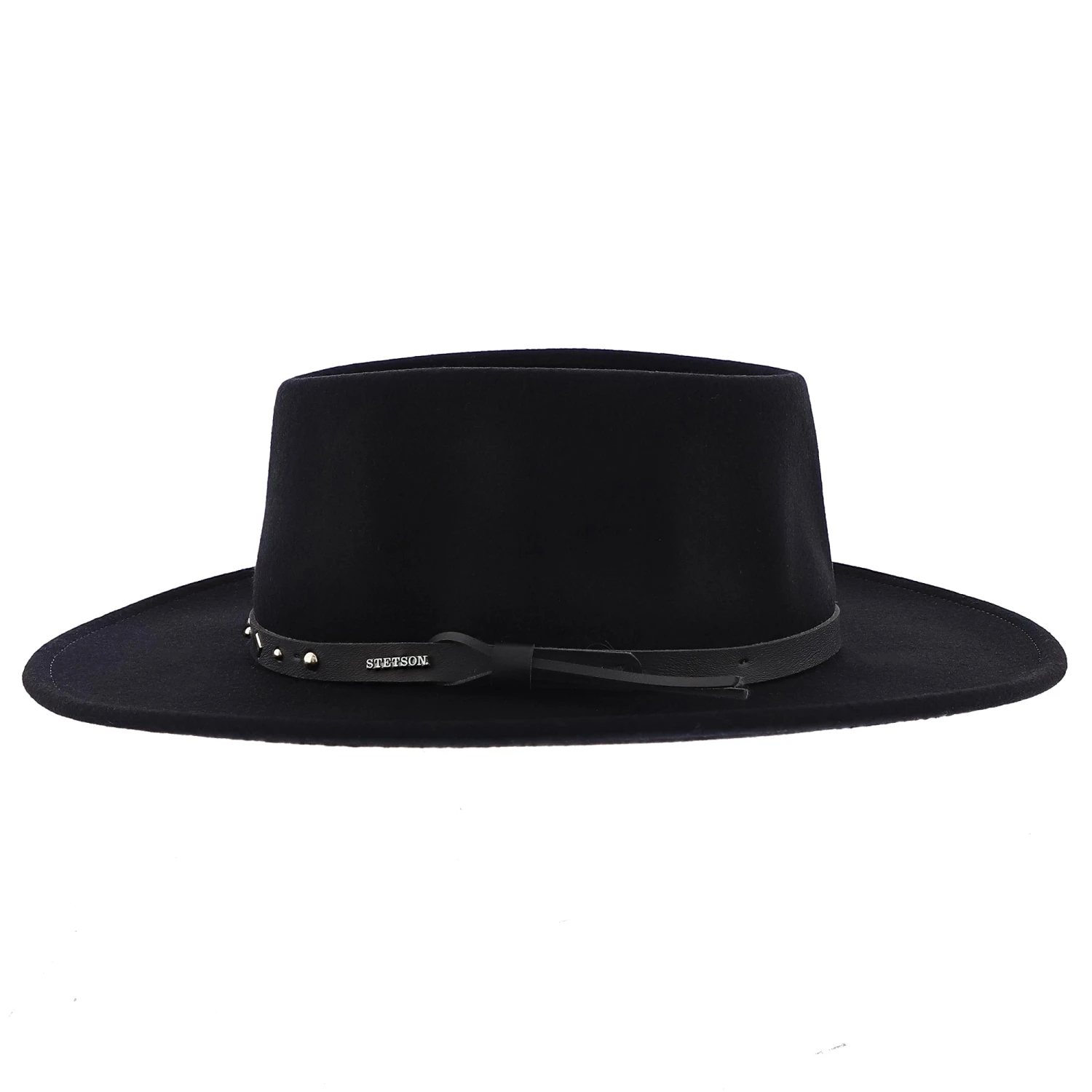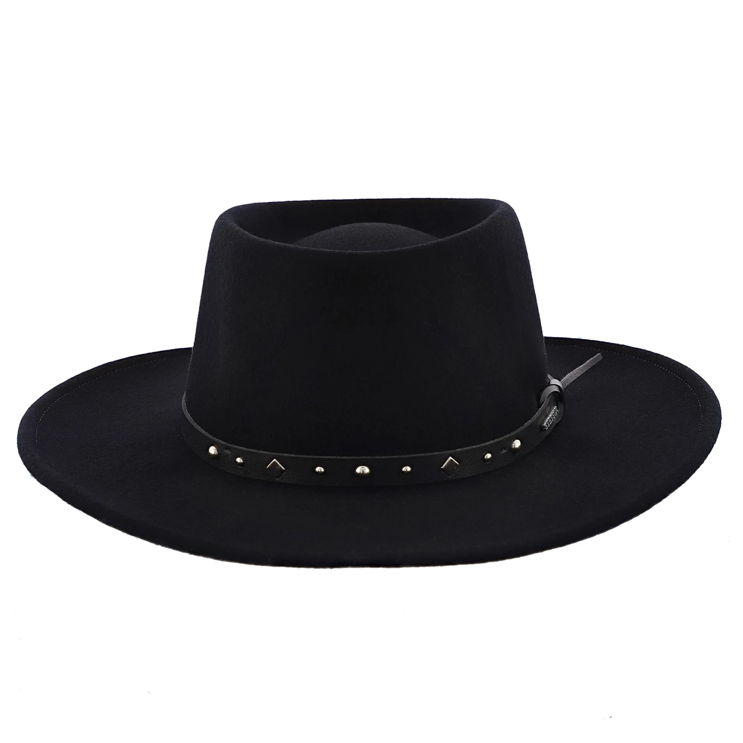 Look dashing in this stylish Black Hawk Stetson Felt Gambler that is very soft. The leather studded band highlights the sleekness of this item. Complete with 3.5″ brim and and padded fabric sweatband for added comfort.