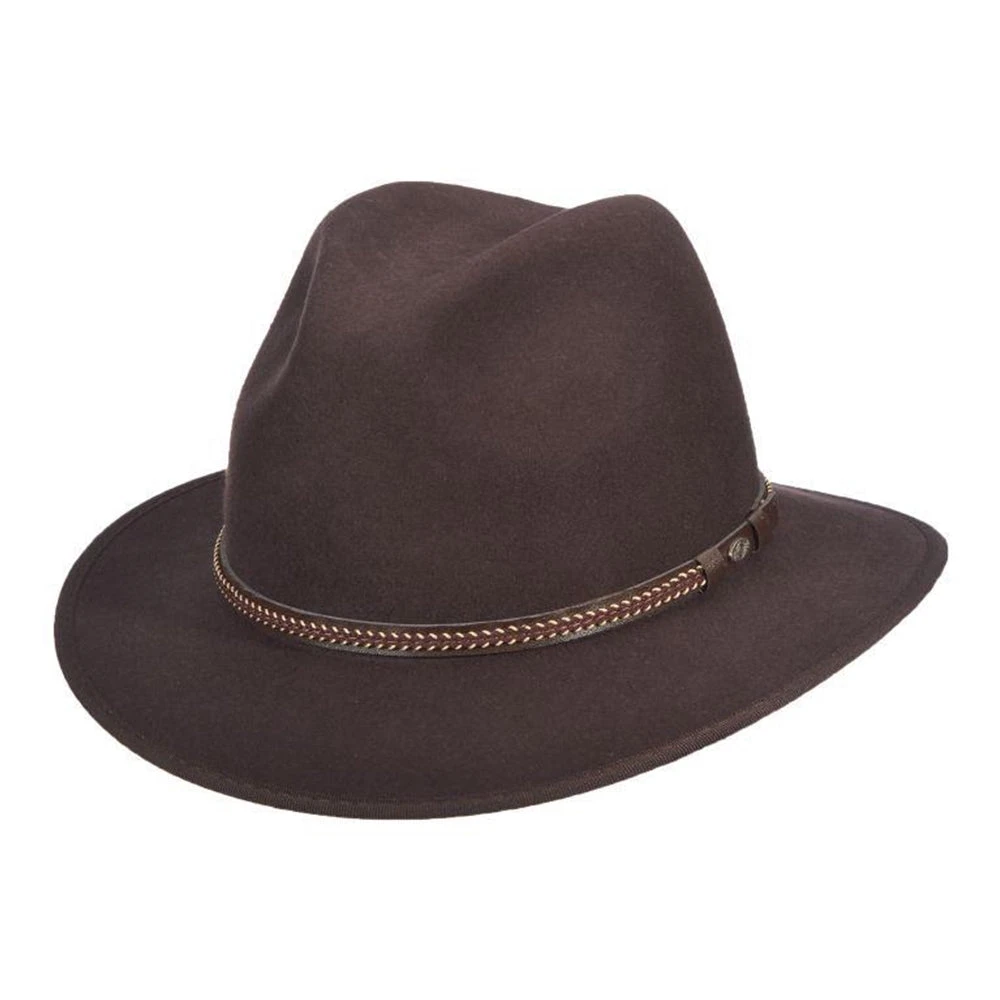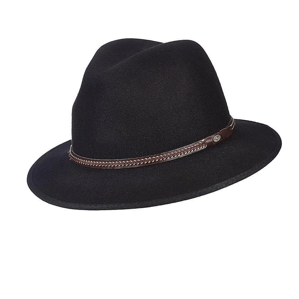 As another option to the fedora, we have this wool felt safari hat in black. The 2.63-inch brim is perfect for protecting faces from the sun and for adding style to the overall look of the hat. It is not a stiff brim, allowing the hat some movement and adjustability in appearance.