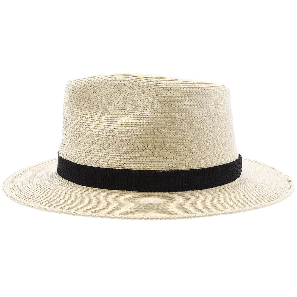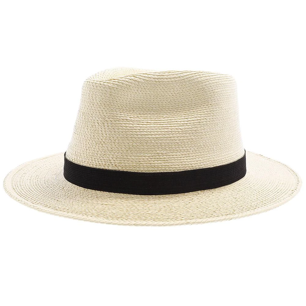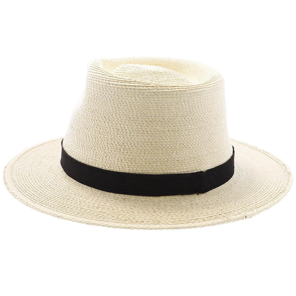 ​The Fine Palm Tear Drop Fedora – Natural Hand-Woven straw hat is a fabulously fetching fedora with a lightweight and breathable construction. This unique straw has a light coloration with an exquisite, almost-ivory tone. The black fabric hatband offers a pop of contrast and makes this look a real head-turner. The teardrop crown features a pinched front to combine the classic look of a fedora with the easy wearability of a straw sun hat. The moderate brim is approximately 2.5†wide while the crown measures in at roughly 4.5†at its highest point.