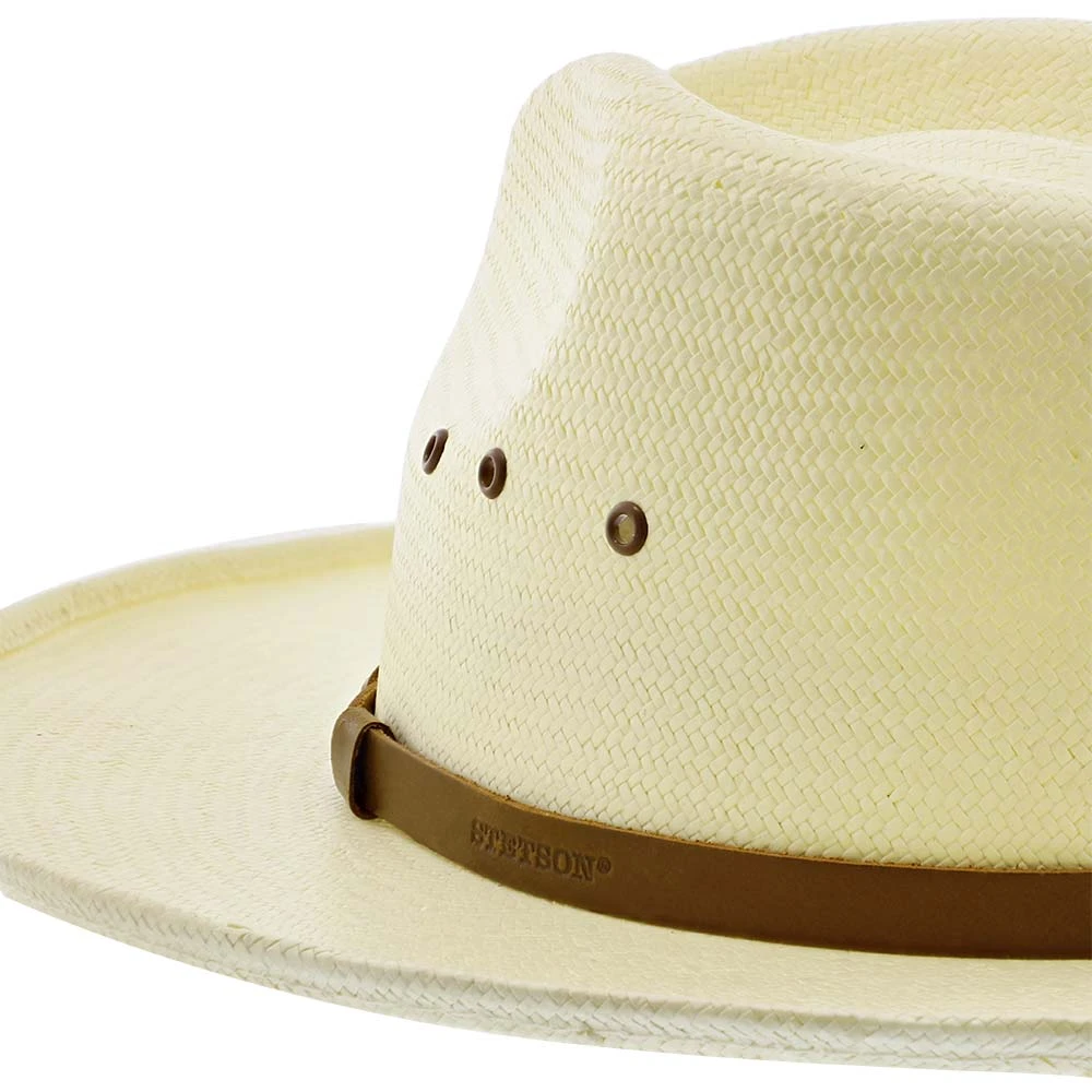 Flaunt your inner cowboy with the Helena Toyo Straw Western Hat by Stetson. Whether you’re going to a rodeo or going out to dinner, this hat provides a classic western style. Made of 100% toyo straw, this hat has a firm finish and is ventilated on the side of the crown with three, stylish eyelets. The leather band wrapped around the crown is braided and tied to the hat with tassels and a circular, wooden toggle to adjust the length. The band has the classic Stetson logo included on the side. Under the hat is the DRI-LEX® technology band that absorbs sweat.
