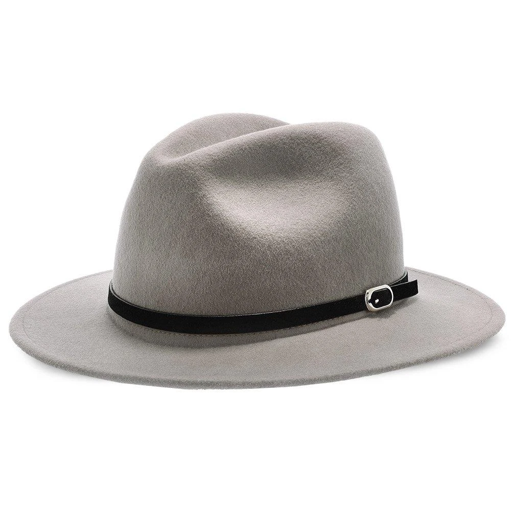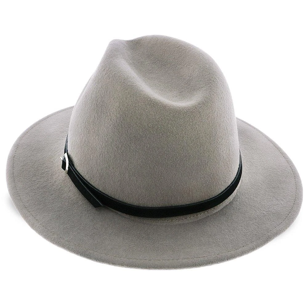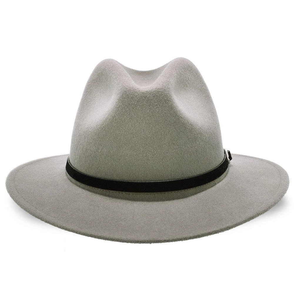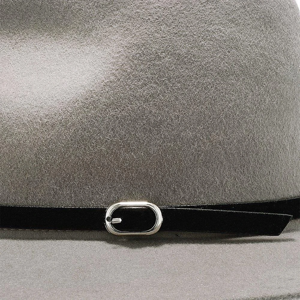 The Empire consists of a 100% Australian wool felt, features a center dent crown, 2 1/2″ brim, leather hat band with silver buckle and a faux leather sweatband.