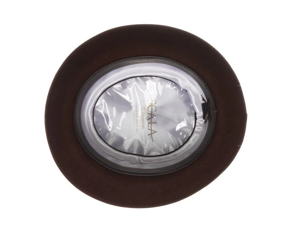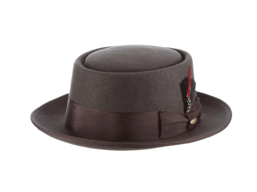 Constructed of 100% wool felt, the hat is comfortably smooth and pleasantly polished. The oval bubble crown of the pork pie is as perfect as can be, while the styling of the grosgrain hatband and bow are a real crowd pleaser. The optional feather raises your tune to a new level of sophistication with that pop of color. The interior satin lining is gorgeous, while the leather sweatband will keep you jamming all night long.