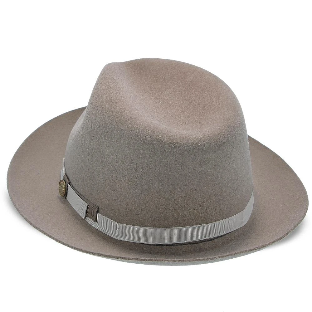 Bring back the classic looks inspired by Clark Gable and Humphrey Bogart with the Milland Fur Felt Fedora by Stetson. This stunning, luxurious hat will give you the classic look of a bygone era with its firm felt and attractive band featuring silver accents. The hat comes in three colors, including gray, tan and black. A classic business suit and silk tie is perfect for this throwback hat. Your business associates will see you as sophisticated and worldly when you arrive.