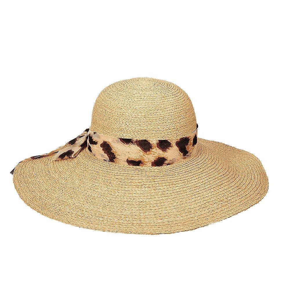 Discover a sense of adventure and intrigue when wearing the Scala LR659 organic raffia braid wide brim hat w/ animal print scarf made from natural, organic raffia straw. Featuring a wide 5-inch brim and a genteel leopard scarf with large black spots infused with tan tones, this hat is the perfect companion for wearing on a sunny day. Suitable for any casual event, the hat offers a practical way to protect the delicate face from the glaring sun.