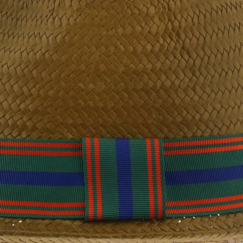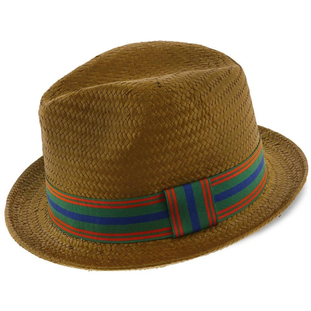 We love this Brooklyn straw fedora. It has an old-school feel with the fun color palate on the hatband. There’s a center dent crown and pinch in the front, as all good fedoras should have.