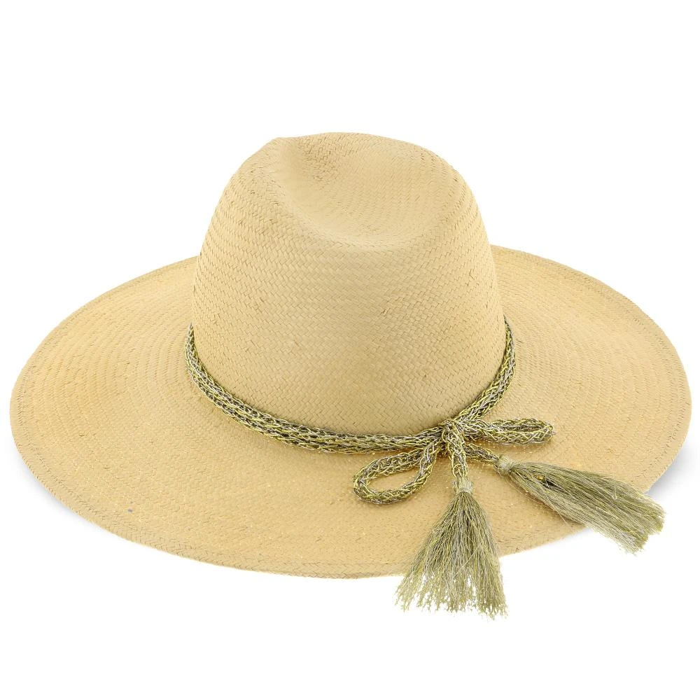 Palmara – Brooklyn Tea Straw Pinch Front Fedora Hat W/ Metallic Band – BKN1510