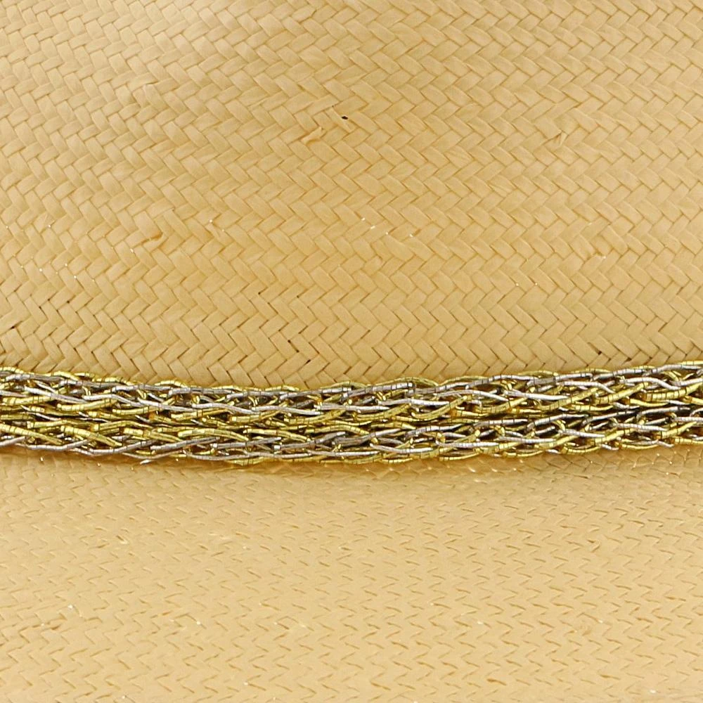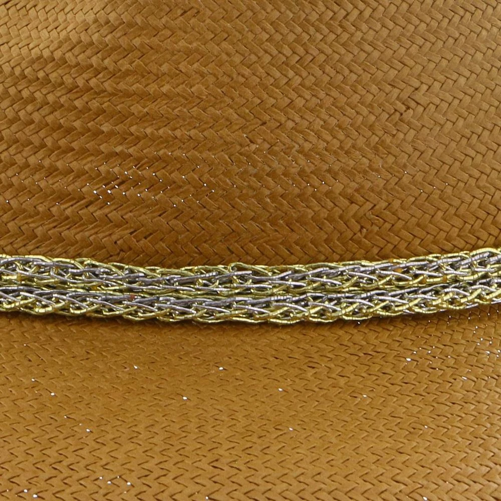 This Brooklyn wide brimmed straw fedora has enough sparkle to make your outfit shine. There’s a compelling gold and silver rope around the hatband, that’s sure to be the highlight of whatever you wear.