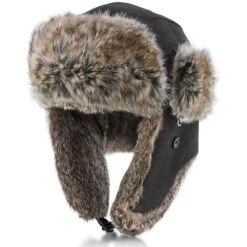 Walrus Hats Genuine Rabbit Fur Brown Trapper Hat