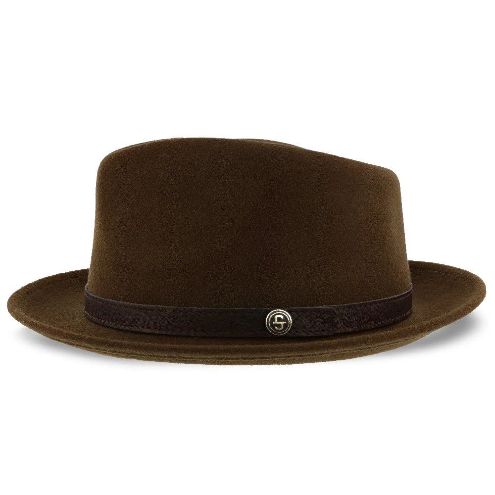 This Stetson Prof Wool Felt Fedora Hat is a wool felt hat with a 2″ brim, a cotton sweatband, and a pinch front crown.