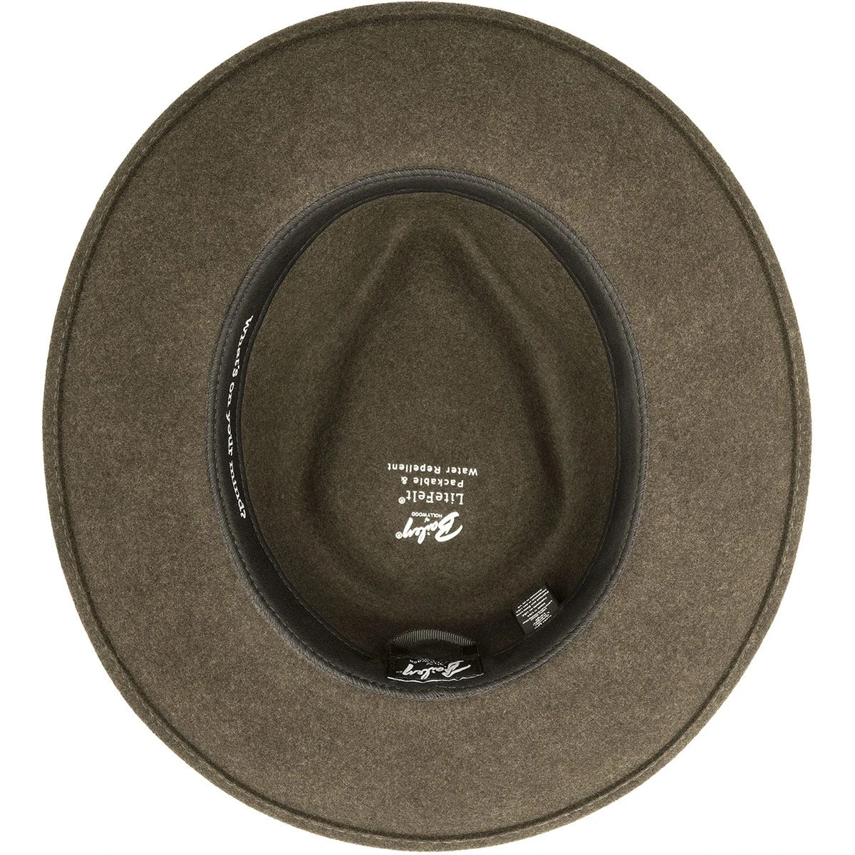 Treport is a Fedora Crown with a snap brim in our water repellent, shape retentive LiteFelt® body. It has an aged suede band with an antique brass finished loop and clamp to secure it.