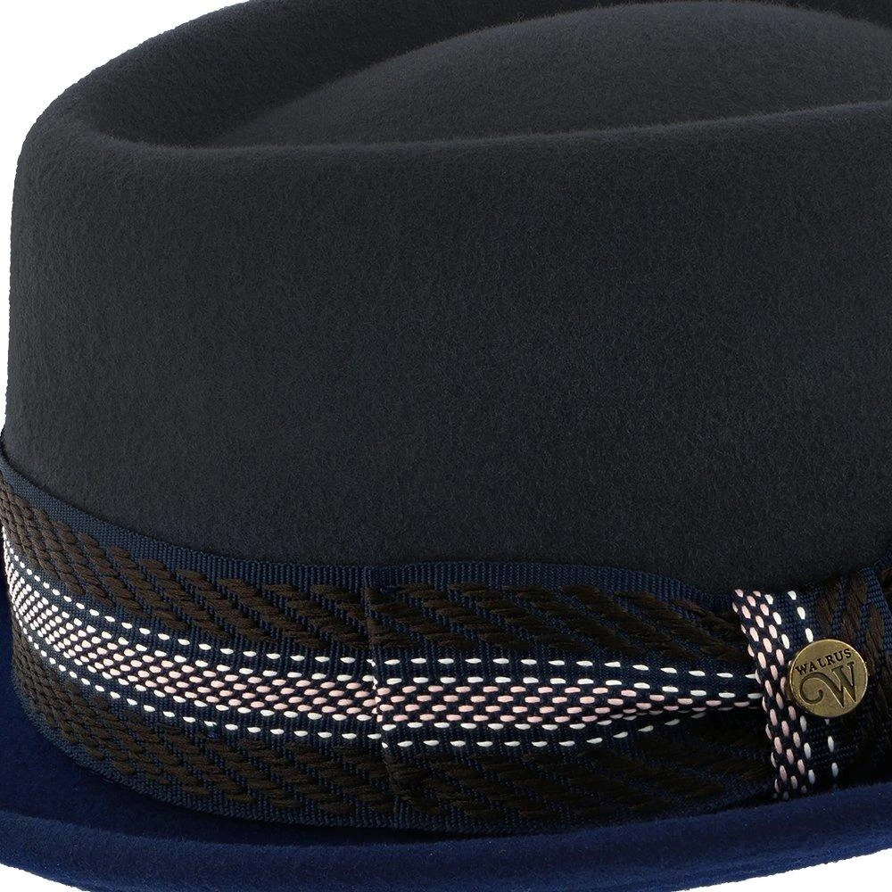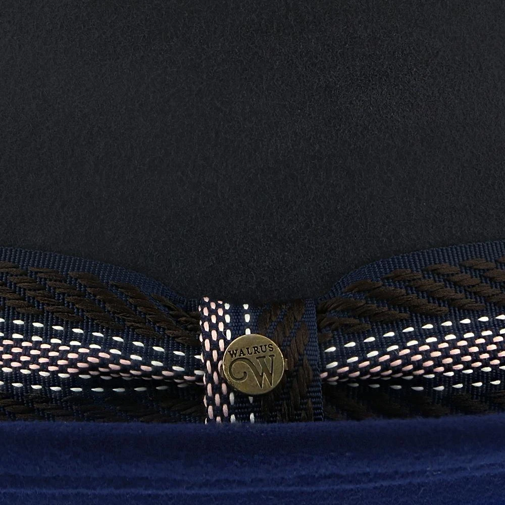 The Tribute consists of a 100% Australian wool felt, features a telescope crown, 1 5/8″ brim, multicolored grosgrain ribbon hat band with stitched side bow, cotton sweatband and a Walrus Hats side pin.