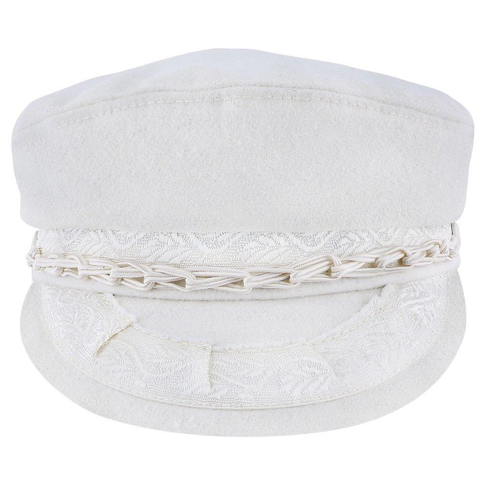 Our attractive black Aegean AEG100 wool blend Greek fisherman hat with a 2″ brim features a woven border with an intricate chain design resting in the midst of two circular embroidered partitions. Perfect for wearing with casual clothing, our comfortable, soft hat brings out an adventurous and showy spirit eager to discover new and exciting experiences. Whether going on a fishing trip or a local event, this Greek fisherman hat offers its own unbeatable charm.