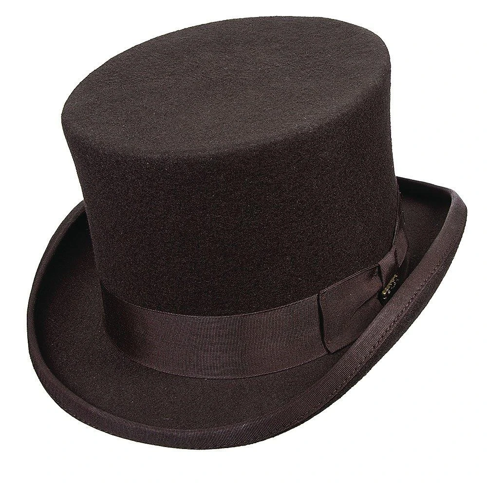 This is the “just right” top hat. This Scala wool felt top hat is five inches tall, the perfect height without being too steampunk short or Abraham Lincoln tall. In this top hat you can take yourself seriously and use for real formal events from weddings to fancy dinners, without being too obnoxious.