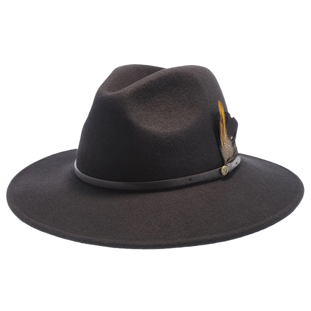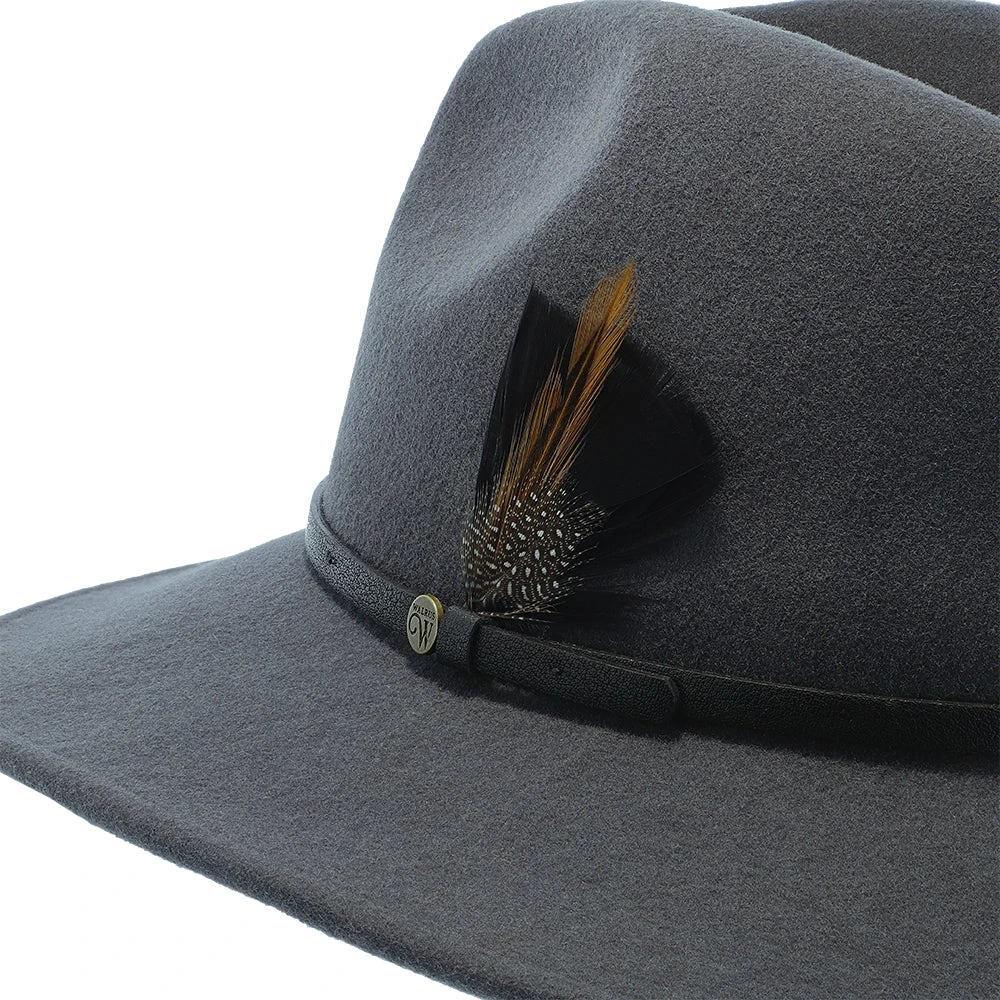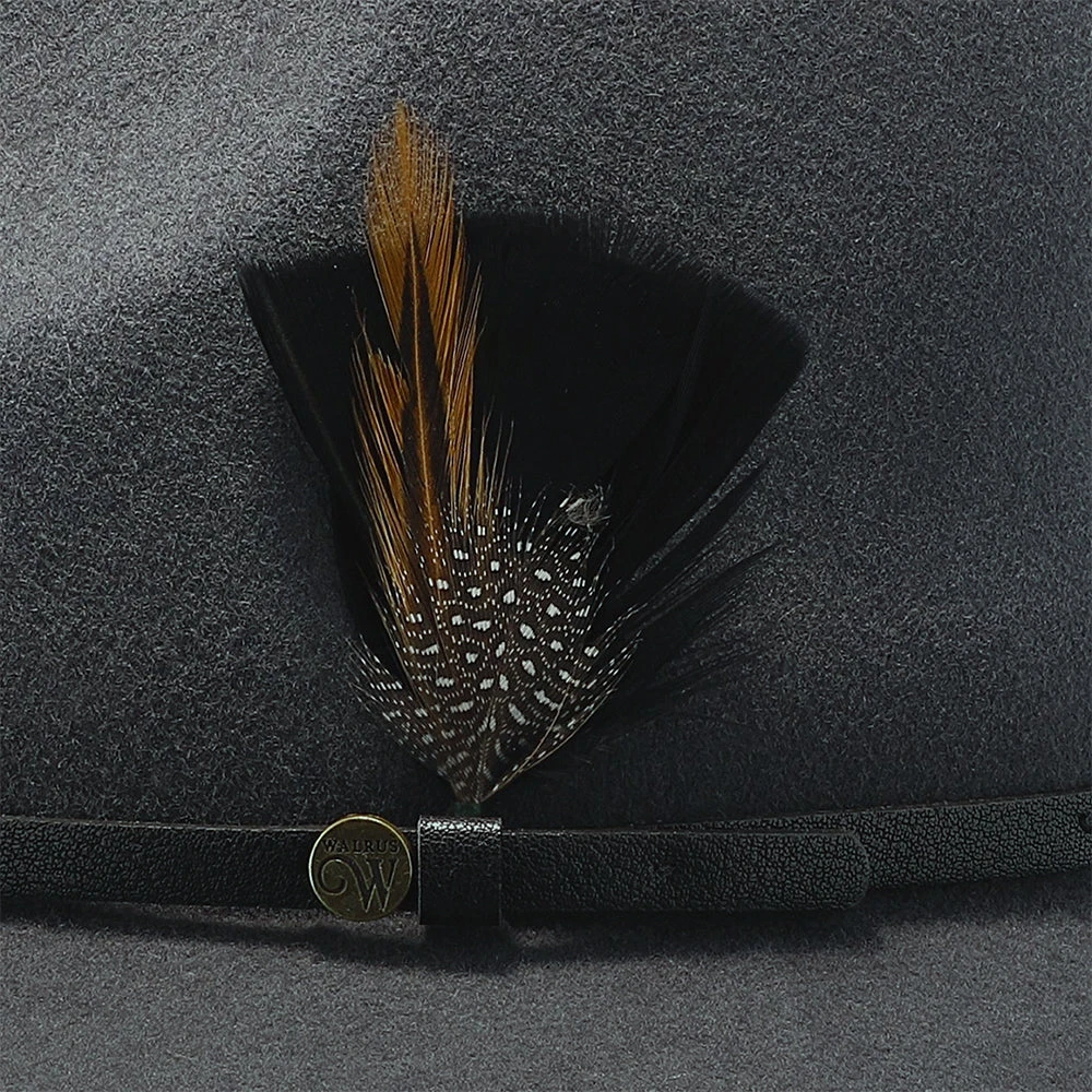 Walrus is proud of their timeless and classic designs and the Wallace is no exception. This hat brings thoughts of the wild frontier when land was still being tamed. The hat has a matching leather band held on with a pin bearing the Walrus logo. The brim is 3-inches wide and it is made of wool, making it perfect for all types of weather. The Wallace is perfect for traveling as it folds easily for packing and returns to its original shape almost immediately. This makes it the best choice for business or leisure trips where you need to store your hat in a checked bag or carry on. The hat is adorable with a striped three-quarter sleeve casual top and jeans or you can wear it with a knee-length form-fitting dress and heels topped with a flowing sweater or poncho. The hat also works with all types of men’s fashions, including jeans, suits and khakis. No closet is complete without the Walrus Wallace.