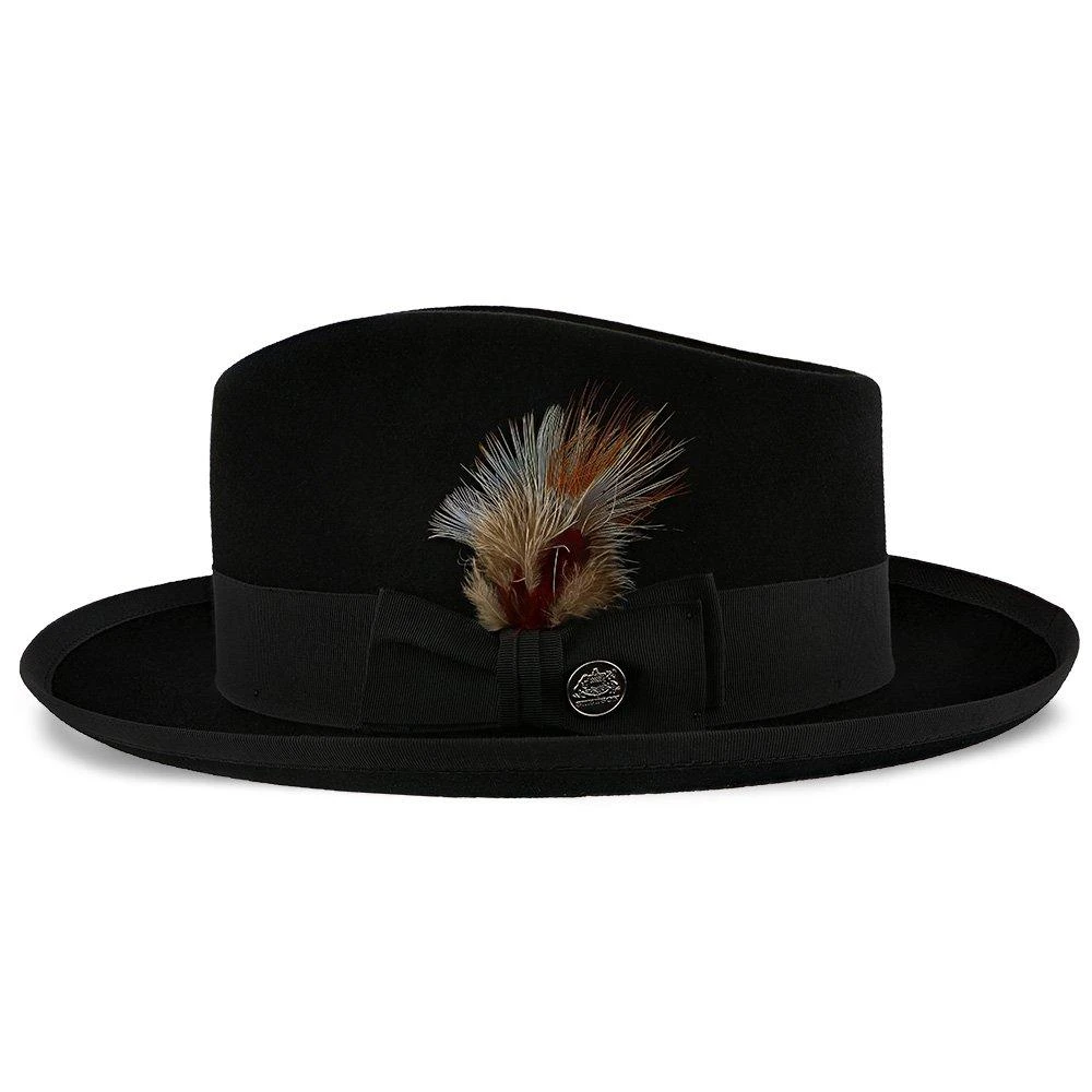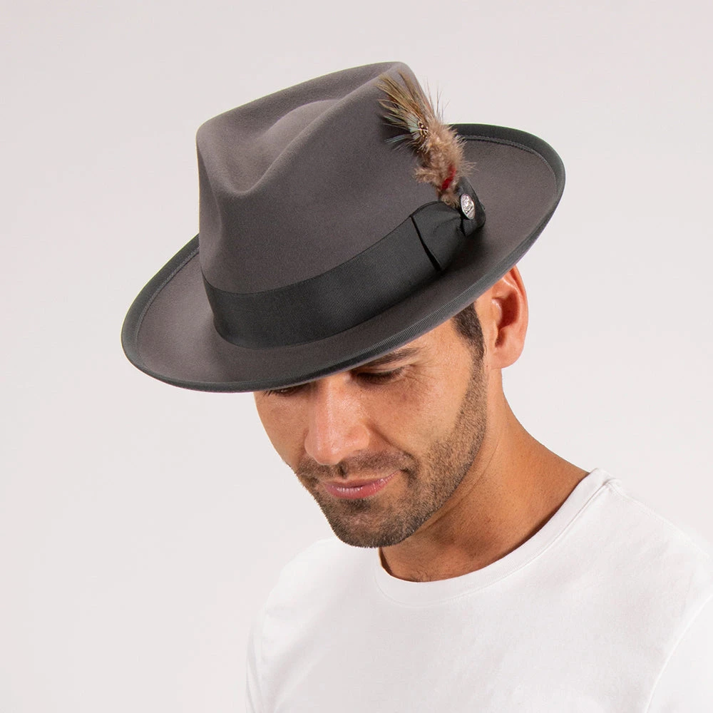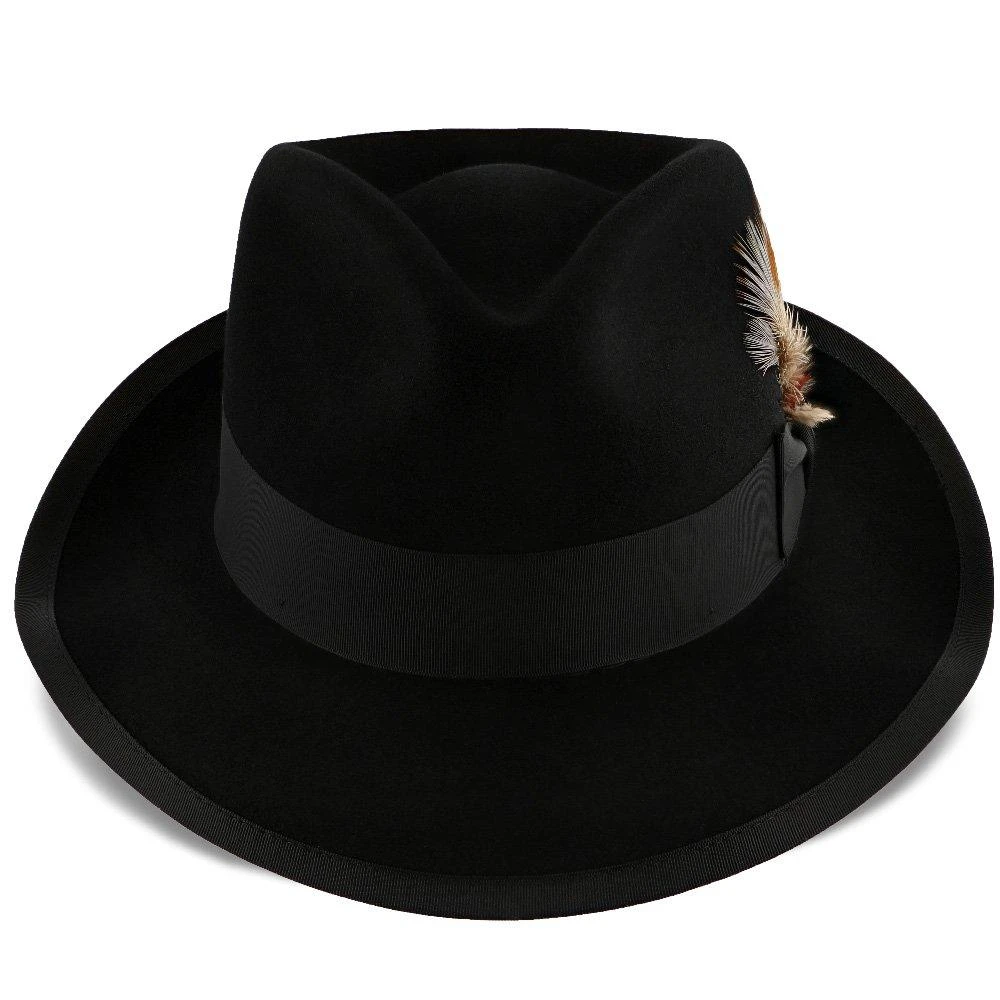 Experience true retro styling with this Whippet Stetson Caribou Fur Felt Fedora. Made in the USA, it is a classic American fur felt fedora. Made famous by Stetson in the mid-1950’s, the classic whippet fedora features the classic tear drop design crown and bound edge the style is known for.
